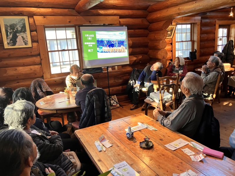 | 昨日が農作業最終日、そして本日、2025年を振り返る納会(忘年会)の日を迎えました。 場所は、見沼区島町948にある「じんだんぼ」レストラン。木の温もりを感じるログハウス風のお店です。 担当者は14時半頃に集まり準備作業、開始15時〜17時半頃迄、参加の皆さんは、美味しい料理を食べながら会話が弾みました。 余興として、ある会員の子供の頃の写真をスクリーンに出して、本人を当てるゲームを行いました。 子供と言っても赤ん坊の時の写真判定は難しく、次回依頼された方には、せめて思春期頃の写真をお願いしたいところです。 そういう私も赤ん坊の写真しか手元になく・・・(良い企画と思ったが、ちょっと要求定義が曖昧だった、反省)。 |