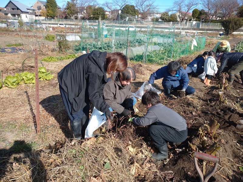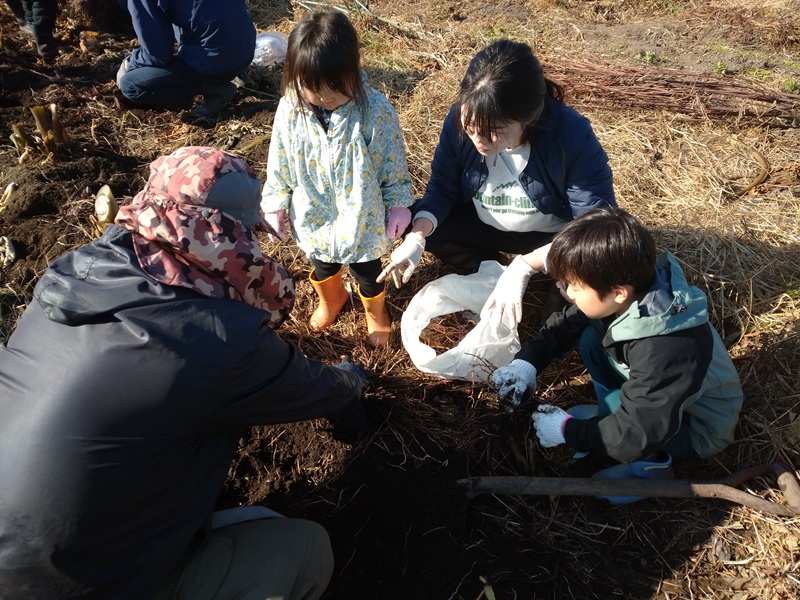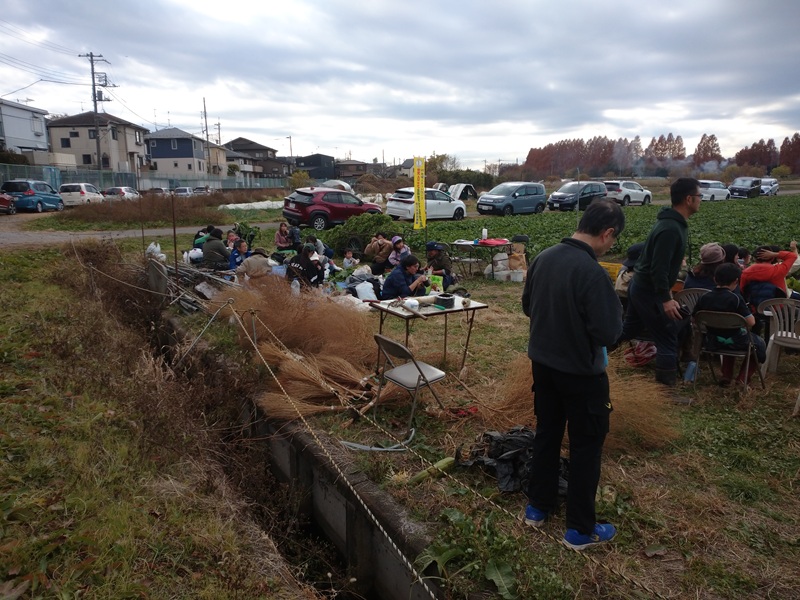 | 朝から晴天の冬晴れ。青い空の下、2024年最後の収穫行事の締めくくり。 まずは、菜の花畑1列に付き1家族の割り当てで雑草取りをしていただきました。 菜種油を取るためには雑草に栄養を取られては大事な菜種が採れません。 出席の早かった順に4家族のグループに分かれて、 参加者みんなで9月に種を播いた白菜、大根、カブと種芋から育てた里芋・八頭・セレベス・京芋から好きなものを選択して収穫。 大きな袋いっぱいのお土産となりました。 今回の大根・カブの重量選手権第1位の方は、重さ4.15kgを掘り上げた11番の方でした。 恒例の箒作り。毎年参加しているご家族は手慣れた手つきで作られていました。 最後は、お待ちかねの畑で取れた里芋による「芋煮会」。 今回はみそ味風味の宮城バージョン。 スタッフの誰かが「トン汁」と発言したら、周囲の人たちから一斉に「い!も!に!」の大合唱。 そんなこんなで農業体験教室は幕を閉じました。 スタッフの皆さま、数日前からの前準備及び後始末とお疲れさまでした。 特に女性陣の方々には家事の合間を縫っての数々の作業ありがとうございました。 皆さま、良いお年をお迎えください。 |