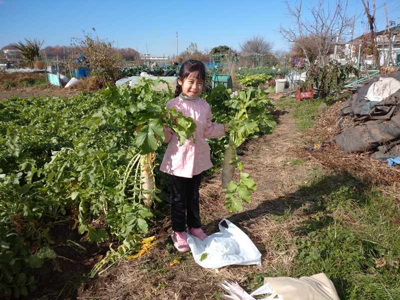 | 秋の日差しもめっきり寒くなってきました。 今回は、大根、聖護院大根、赤かぶ、白かぶ、白菜の収穫になりました。 みんな大きく育っていて、持ちきれない大きさになっていました。 |