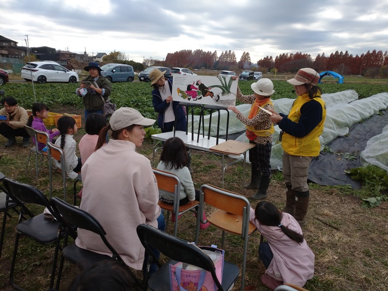 | 今年も残り2ヶ月になりました。新型コロナウイルスの猛威がなかなか収束しない中、20数名の家族の方々に集まって頂きました。 今回の収穫は、里芋、落花生、絵本の読み聞かせ、おまけは、大根でした。 加えて、県職員によるアンケートのお願いがありました。 今回も受け付け順に3つのグループに分かれて、A農地←→C農地と行き来しながらの農作業にいそしみました。 |