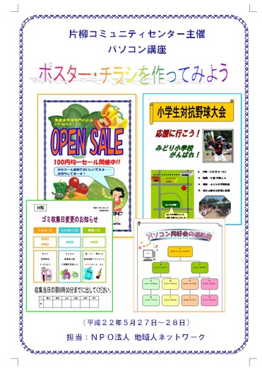 「パソコン活用楽しみ講座」シリーズで講座を担当しています。