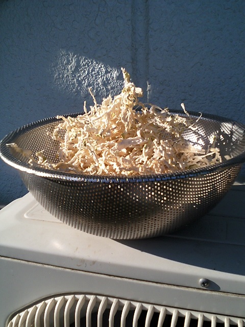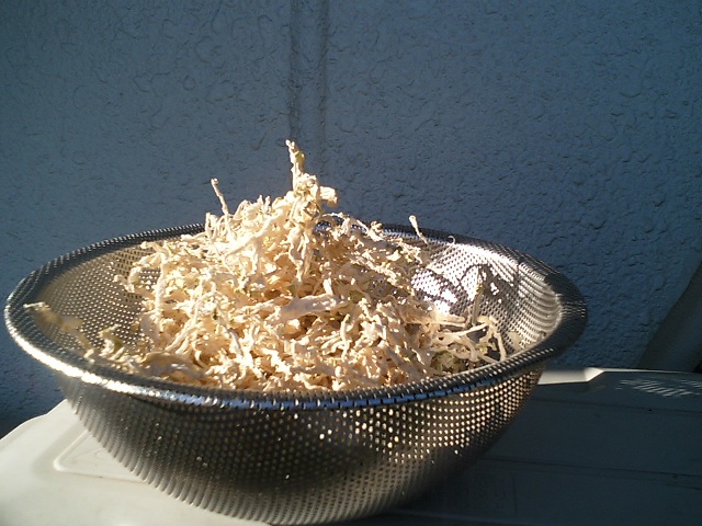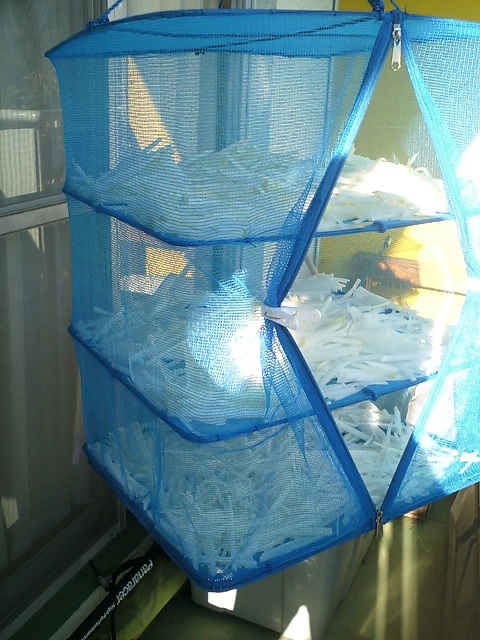 ダイコンの千切り@〜Aから籠に入れて干すこと一週間B〜D、できあがった切干大根でムッチムを作ったんだってE〜J