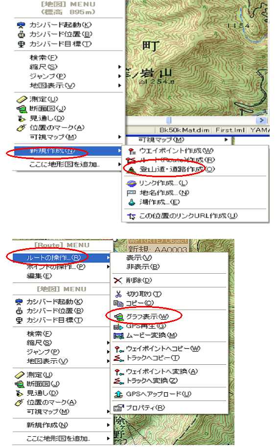 | ・ルート上のウエイポイントの近くを右クリックするとルートメニューが表示されるのでグラフ表示を選択する | |||