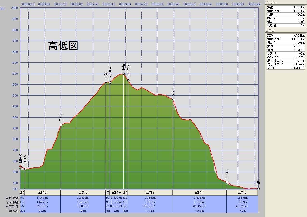| ・ウエイポイントで区切られた高低図が表示される | |||